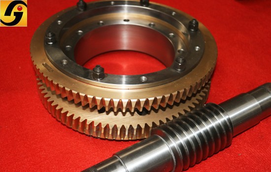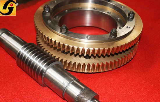 蝸輪的輪齒也與蝸桿一樣,加工有左右不同的齒面,但因?yàn)槲佪喪菆A柱齒輪,所以所有輪齒的齒距相等。